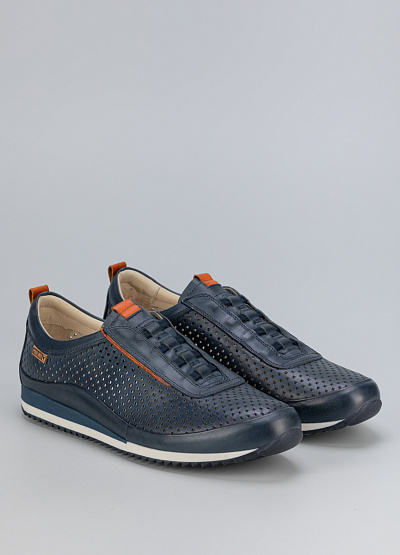 • Мужские кроссовки синего цвета из натуральной кожи от бренда Pikolinos. Данная модель ощущается невероятно комфортно в течение всего дня. Открытая шнуровка в тон. Закругленный носок. Плоская рифленая подошва. Упростите свою жизнь с помощью одной пары обуви, которая предназначена именно для этого. Сквозная перфорация позволит стопе дышать целый день и отводить лишнюю влагу.