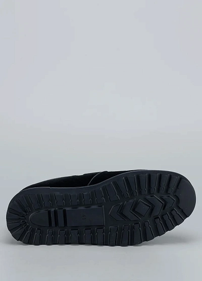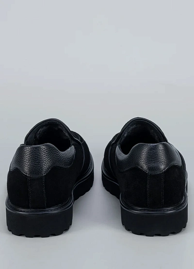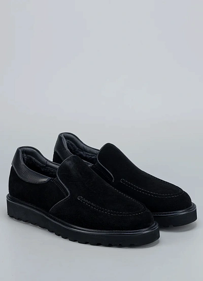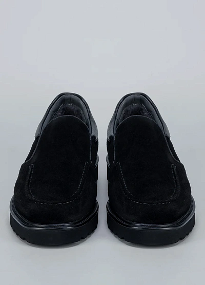 • Мужские лоферы Duca Daretti — стильная и практичная модель для холодного сезона. Выполнены из мягкой чёрной замши с кожаными вставками в области пятки, что создаёт интересный контраст текстур. Внутренняя меховая отделка обеспечивает комфорт и тепло даже в прохладную погоду. Рельефная подошва добавляет устойчивости и удобства при ходьбе.