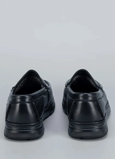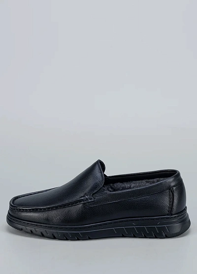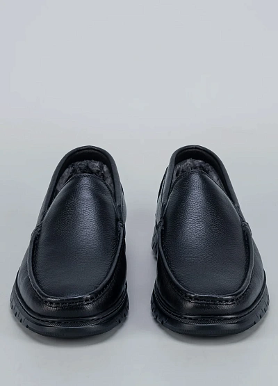 • Мужские утеплённые мокасины Duca Daretti — практичная обувь для холодного времени года. Модель выполнена из гладкой чёрной кожи и дополнена мягким меховым подкладом, который обеспечивает тепло и комфорт даже в мороз. Лаконичный дизайн без шнуровки делает обувь удобной и универсальной для повседневного стиля.