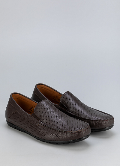 • Коричневые мужские мокасины из натуральной кожи в классическом стиле для повседневного ношения.