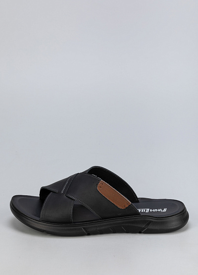 • Мужские черные шлепанцы из натуральной кожи в классическом стиле — удобная и стильная обувь для летнего сезона. Практичная модель обеспечивает комфорт и свободу движений.
