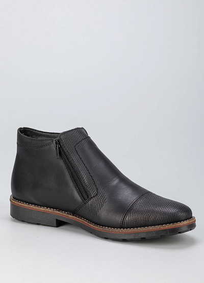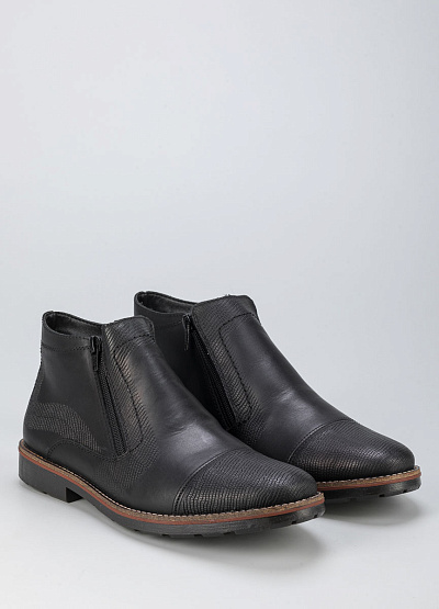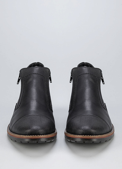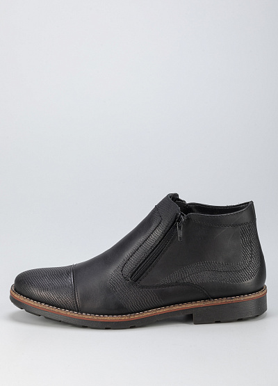 • Мужские сапоги из натуральной кожи от бренда Rieker. Закругленный носок. С обеих сторон замок на молнии сбоку. Плоская рифленая подошва на низком каблуке.
