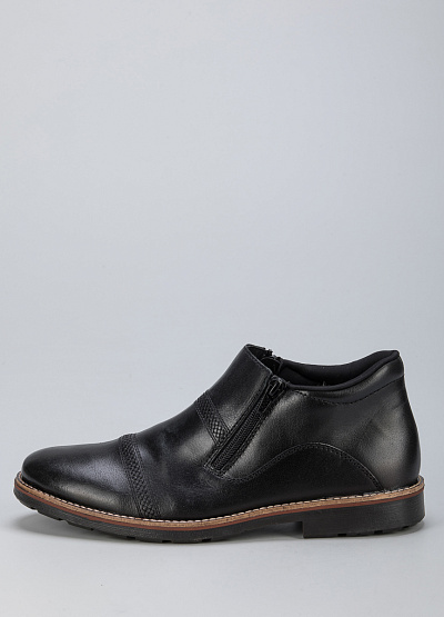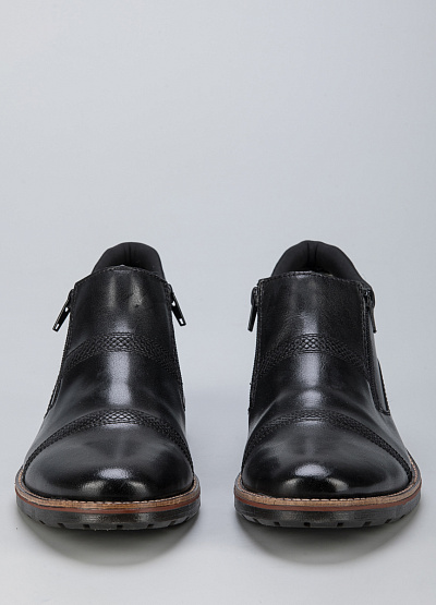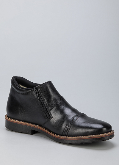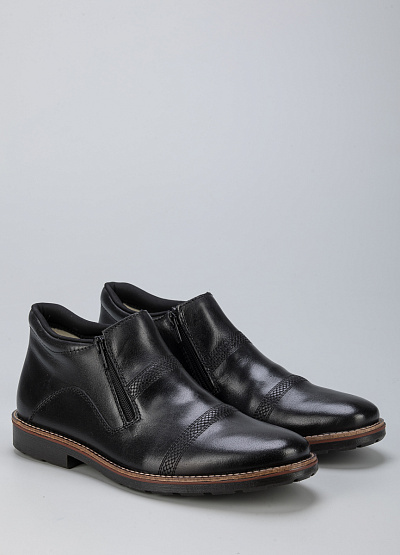 • Мужские сапоги из натуральной кожи от бренда Rieker. Закругленный носок. Боковая молния с двух сторон. Декоративные полоски. Рифленая подошва на низком каблуке.