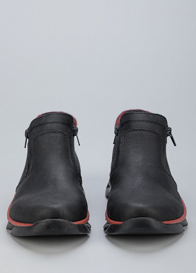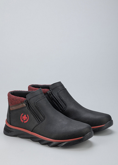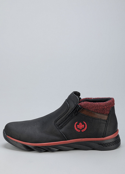 • Мужские сапоги из натуральной кожи от бренда Rieker. Закругленный носок. Боковой замок с обеих сторон. Боковая часть украшена вышитым логотипом. Плоская рифленая подошва.