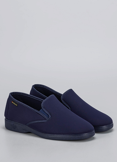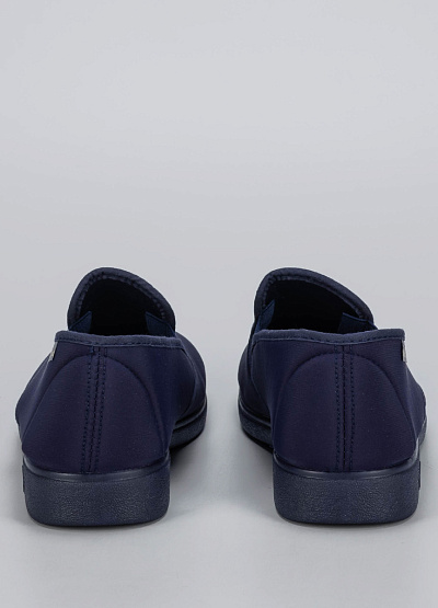 Комфорт и практичность — всё, что нужно от идеальной домашней обуви. Эти женские слипоны в классическом тёмно-синем цвете выполнены из мягкого текстильного материала и дополнены удобными эластичными вставками по бокам, обеспечивающими лёгкое надевание и плотную посадку.