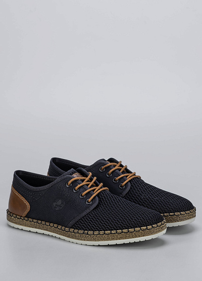 Эти мужские туфли Rieker — идеальное решение для тёплого времени года. Модель сочетает в себе комфорт спортивной обуви и элегантность классических туфель. Перфорированный текстиль и декоративная отделка под джут делают их отличным выбором для повседневных образов.