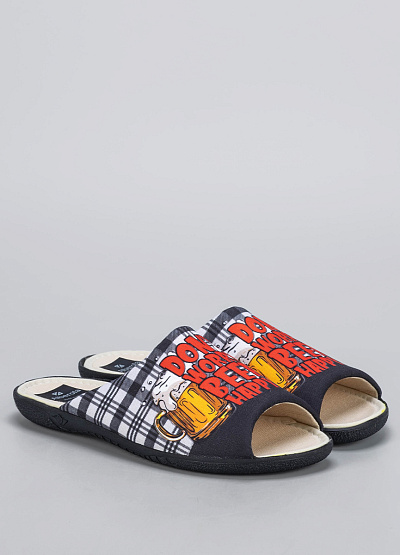 Яркие и удобные тапочки от Alberola с оригинальным дизайном — отличный вариант для дома и настроения. Клетчатый текстильный верх украшен весёлым принтом и фразой "Don't worry, beer happy". Модель с открытым носком, комфортной анатомической формой и нескользящей подошвой обеспечит лёгкость и комфорт на каждый день.