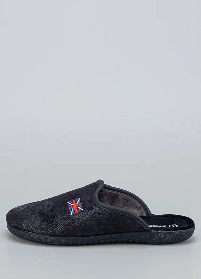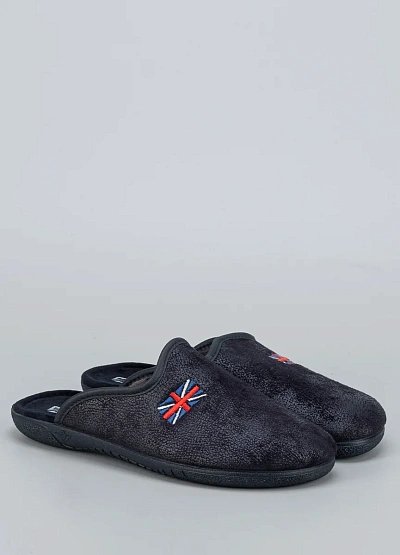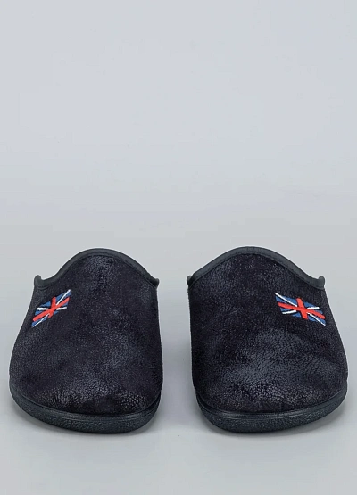 • Мужские домашние тапочки Alberola в темно-синем цвете с вышивкой в виде британского флага — стильное и комфортное решение для дома. Лаконичный фасон с открытой пяткой обеспечивает удобство при использовании, а мягкая внутренняя подкладка дарит тепло и уют. Легкая подошва с рельефом делает модель практичной и долговечной.