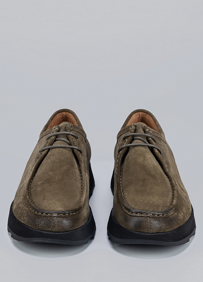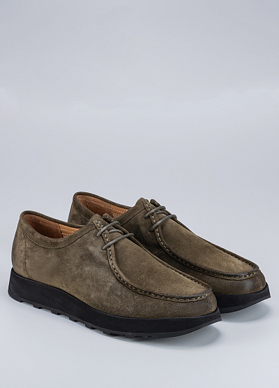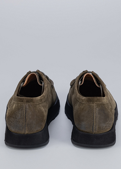 • Мужские туфли цвета хаки из натурального нубука от бренда Duca Daretti. Данная модель прекрасно сочетается с любым деловым нарядом и создает элегантный, стильный образ. Закругленный носок. Открытая шнуровка в тон. Плоская подошва адаптируется к ноге. Они станут незаменимым атрибутом  гардероба любого мужчины  и подойдут для повседневной носки, ведь в них вы всегда будете чувствовать себя комфортно и уверенно.