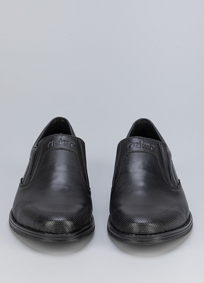 Мужские туфли черного цвета из натуральной кожи от бренда Rieker. Данная модель прекрасно сочетается с любым деловым нарядом и создает элегантный, стильный образ. Открытая шнуровка в тон. Закругленный носок. Плоская подошва на низком каблуке. Они станут незаменимым атрибутом любого гардероба, ведь в них вы всегда будете чувствовать себя комфортно и уверенно.