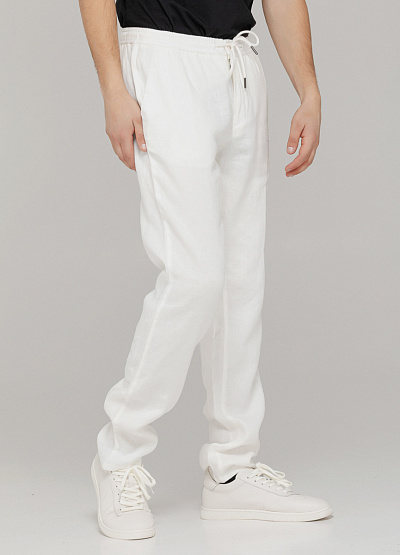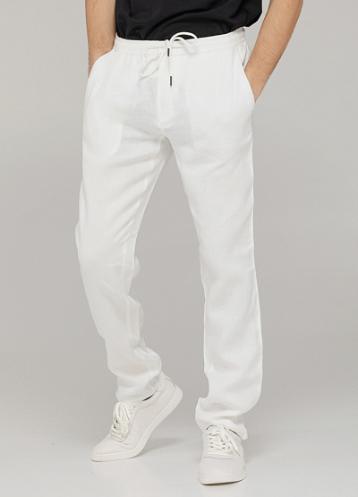 Элегантные и универсальные мужские брюки белого цвета из льна – идеальный выбор как для повседневного стиля, так и для деловых образов.