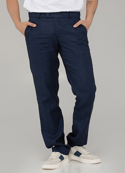 • Мужские брюки из льна тёмно-синего цвета — стиль и комфорт для жарких дней. Идеальный выбор для тех, кто ценит элегантность и свободу движений.