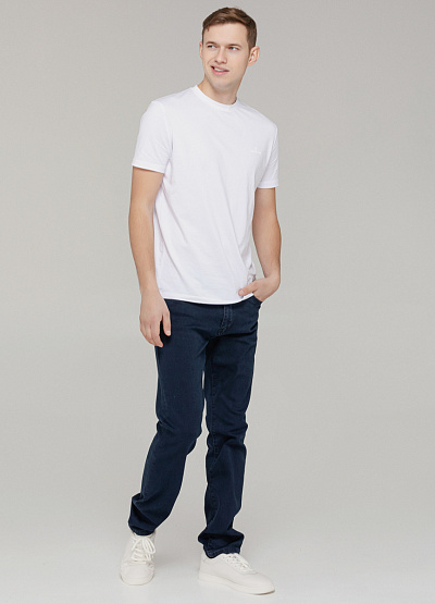 • Мужские классические джинсы глубокого тёмно-синего цвета. Прямой крой, средняя посадка и универсальный дизайн делают их идеальным выбором для повседневного гардероба. Изготовлены из качественного хлопкового денима с добавлением эластана для комфортной посадки. Джинсы оснащены традиционной застежкой на пуговице и молнии, а также пятью карманами для удобства. Отличный вариант для создания стильного casual-образа!
