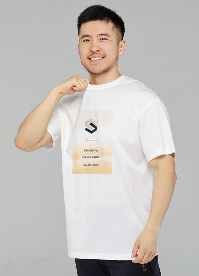 • Мужская футболка белого цвета от бренда I See D.N.M. Лицевая сторона декорирована крупным принтом. Короткие рукава. Круглый вырез.