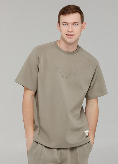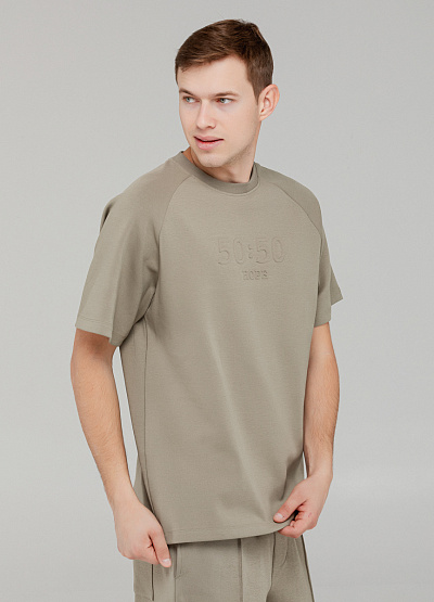 • Эта мужская футболка — гармоничное сочетание минимализма, мягкого оттенка и комфорта. Песочный цвет добавляет тепла и легко сочетается с базовыми вещами гардероба, а свободный крой дарит свободу движения на каждый день. Изготовлена из плотного трикотажа на основе хлопка, изделие украшено рельефной вышивкой 50:50 HOPE, подчёркивающей философию бренда — баланс и надежду.