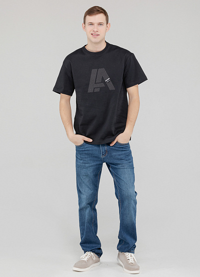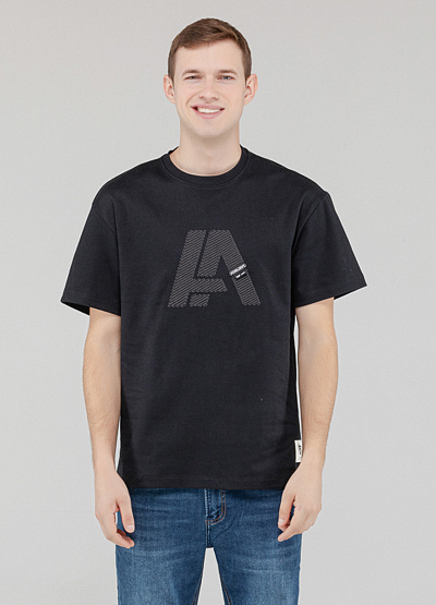 • Стильная мужская футболка свободного кроя в черном оттенке — отличный выбор для тех, кто ценит комфорт и актуальный дизайн. Центральный акцент модели — объёмный принт с аббревиатурой LA, дополненный небольшой декоративной нашивкой. Футболка выполнена из мягкого и плотного трикотажа, который хорошо держит форму и приятен к телу. Подходит как для повседневной носки, так и для создания стильных городских образов.