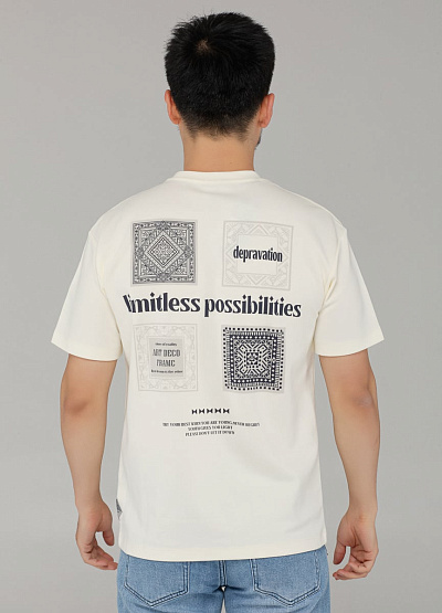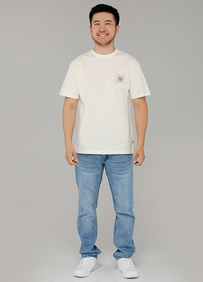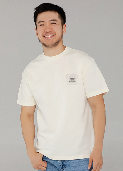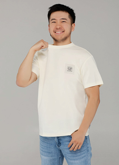 • Мужская футболка в нежном кремовом оттенке — свежий акцент в повседневном гардеробе. Модель декорирована аккуратным принтом «ART DECO FRANCE» на груди, что добавляет стильную изюминку.
