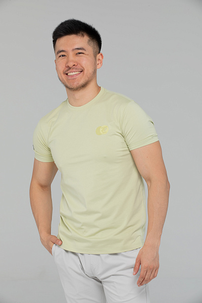 • Мужская футболка светло-зеленого цвета от бренда I See D.N.M. Боковая сторона и рукав декорированы логотипом. Короткие рукава. Круглый вырез.