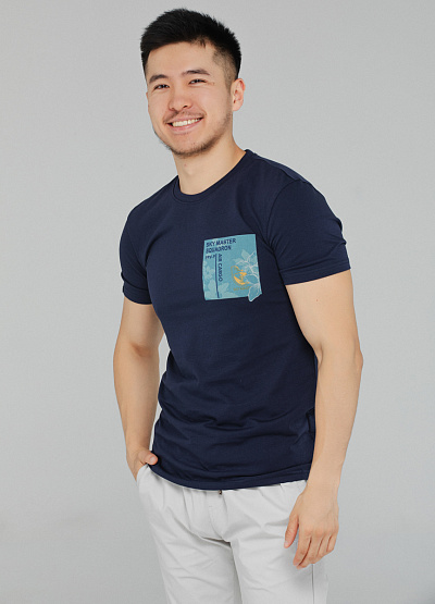 • Мужская футболка синего цвета от бренда I See D.N.M. Лицевая и задняя часть декорирована принтом. Короткие рукава. Круглый вырез.