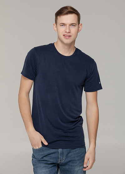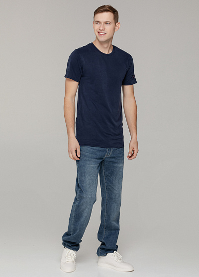 • Лаконичная и стильная темно-синяя футболка – базовый элемент гардероба, который легко сочетать с любым образом.