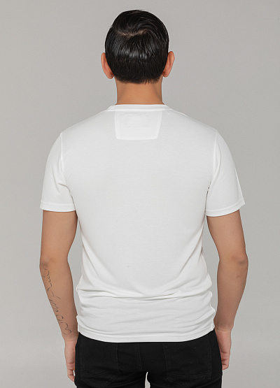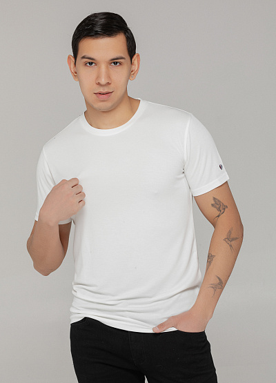 • Лаконичная и стильная футболка молочного цвета - базовый элемент гардероба, который легко сочетать с любым образом.