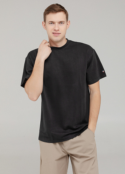 • Мужская футболка чёрного цвета — универсальная база гардероба, которая подойдёт для любого случая благодаря своему минималистичному дизайну.