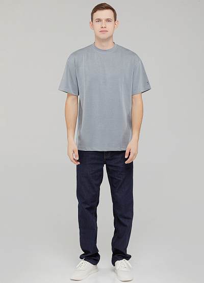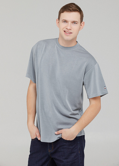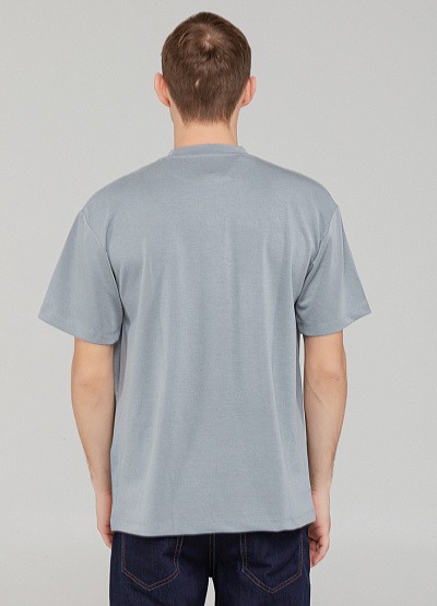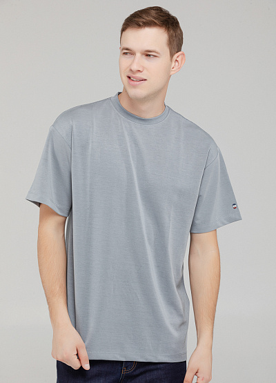 • Мужская футболка в светло-сером оттенке — лаконичный и универсальный элемент базового гардероба.