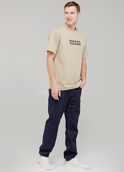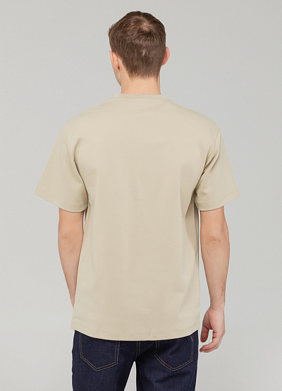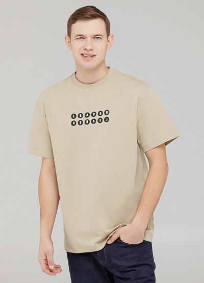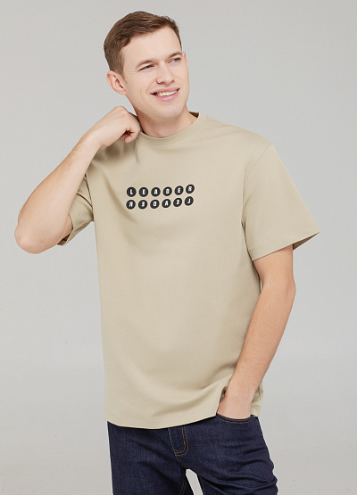 • Мужская футболка бежевого цвета с принтом — универсальный элемент гардероба с характером.