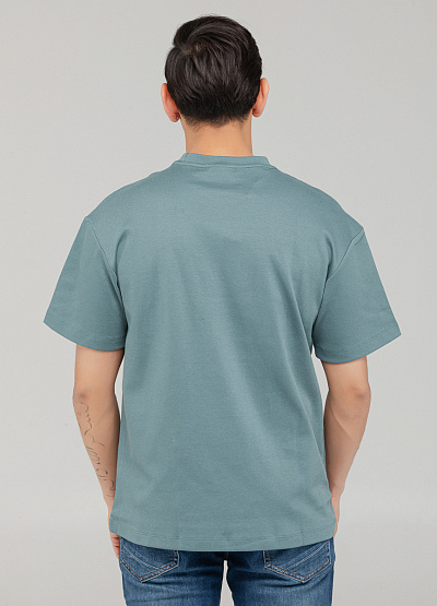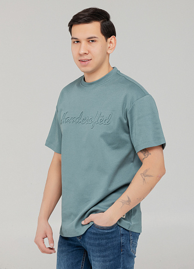 • Мужская футболка приглушённого зелёно-бирюзового оттенка с надписью Handcrafted — универсальный вариант для стильных и комфортных образов на каждый день.