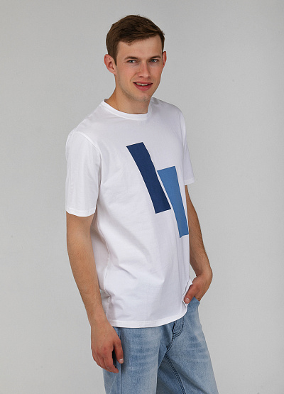 • Мужская футболка из хлопка от бренда Thomas Graf. Лицевая сторона декорирована крупным принтом. Короткие рукава. Круглый вырез.