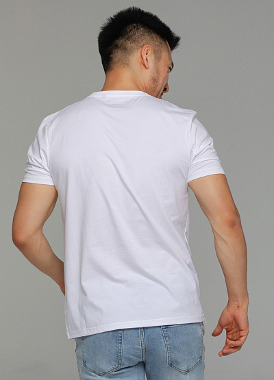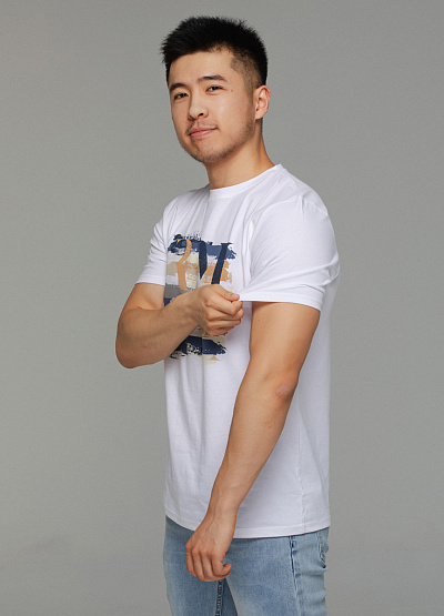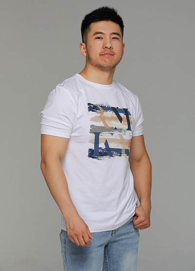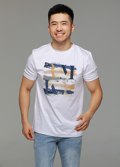 • Мужская футболка белого цвета от бренда Ralf Muller. Модель выполнена из хлопка. Лицевая сторона декорирована крупным принтом. Короткие рукава. Круглый вырез.