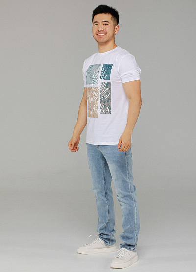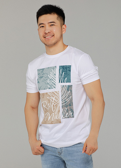 • Мужская футболка белого цвета от бренда Ralf Muller. Модель выполнена из хлопка. Лицевая сторона декорирована крупным принтом. Короткие рукава. Круглый вырез.