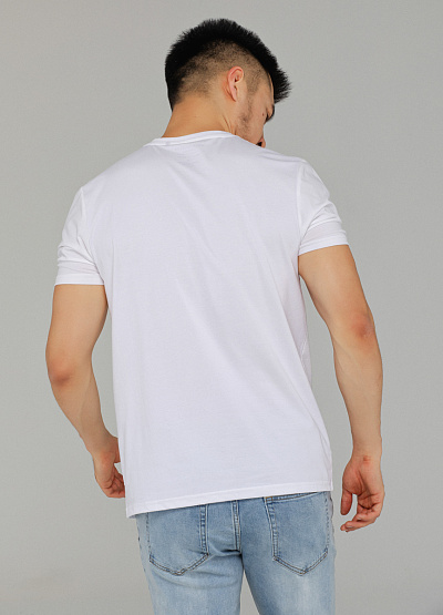 • Мужская футболка белого цвета от бренда Ralf Muller. Модель выполнена из хлопка. Лицевая сторона декорирована крупным принтом. Короткие рукава. Круглый вырез.