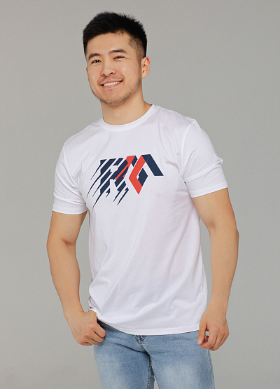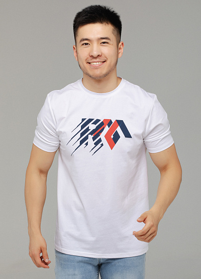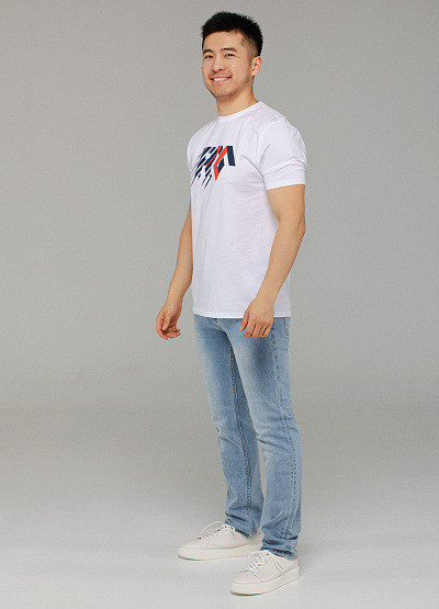 • Мужская футболка белого цвета от бренда Ralf Muller. Модель выполнена из хлопка. Лицевая сторона декорирована крупным принтом. Короткие рукава. Круглый вырез.