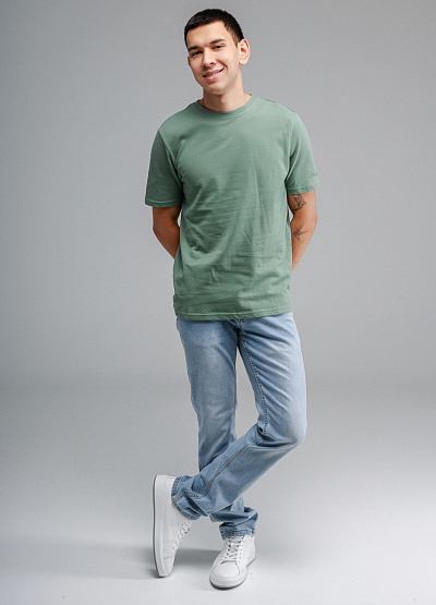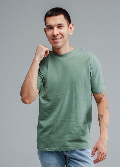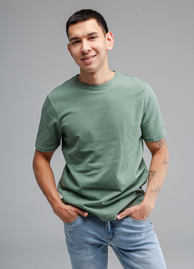 • Мужская футболка зеленого цвета от бренда Thomas Graf. Модель свободного кроя выполнена из хлопка. Короткие рукава. Рукав декорирован логотипом. Круглый вырез.