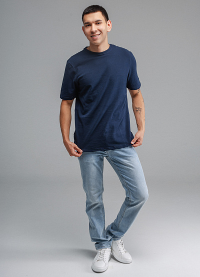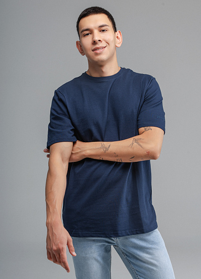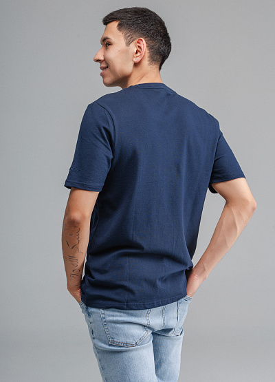 • Мужская футболка синего цвета от бренда Thomas Graf. Модель свободного кроя выполнена из хлопка. Короткие рукава. Рукав декорирован логотипом. Круглый вырез.