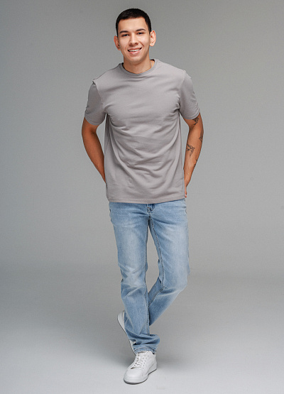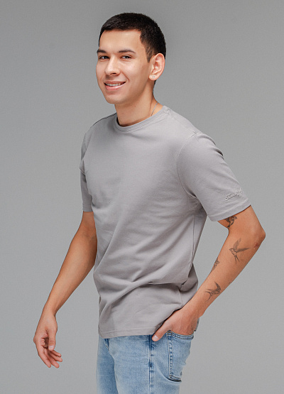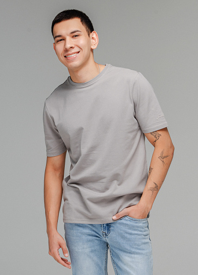 • Мужская футболка серого цвета от бренда Thomas Graf. Модель свободного кроя выполнена из хлопка. Короткие рукава. Рукав декорирован логотипом. Круглый вырез.