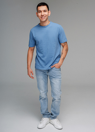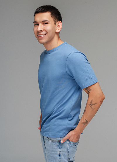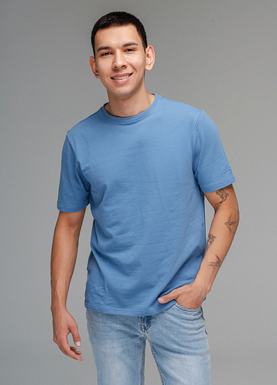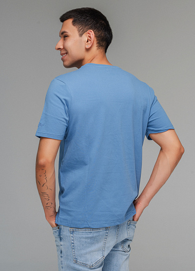 • Мужская футболка голубого цвета от бренда Thomas Graf. Модель свободного кроя выполнена из хлопка. Короткие рукава. Рукав декорирован логотипом. Круглый вырез.