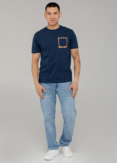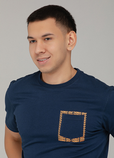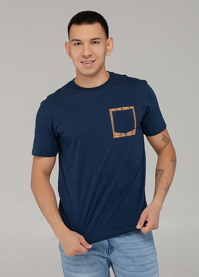 • Мужская футболка тёмно-синего цвета с декоративной отделкой — стильный акцент на повседневный образ
