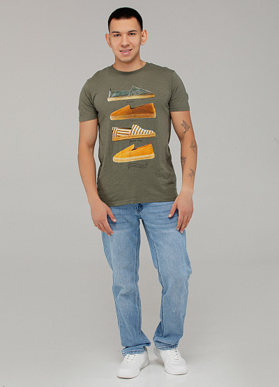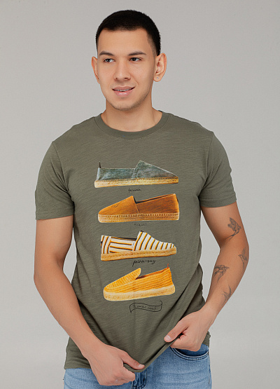 • Мужская футболка оливкового цвета с оригинальным принтом — для тех, кто ценит комфорт и стиль с юмором