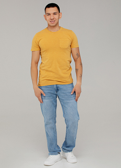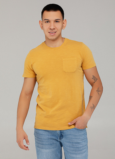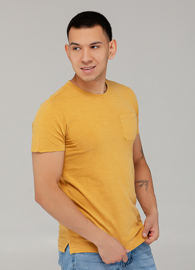 • Мужская футболка светло-бежевого цвета с нагрудным карманом — стильная база на каждый день