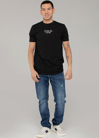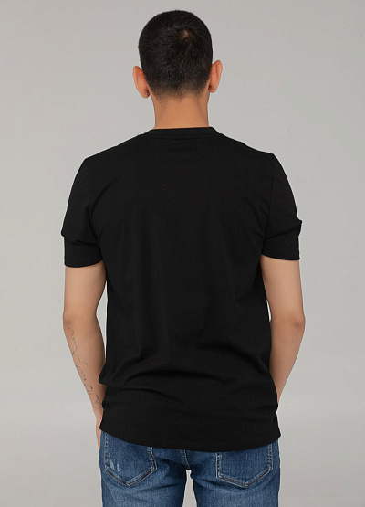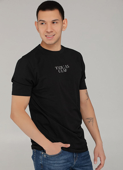 Универсальный выбор для гардероба современного мужчины. Чёрная футболка с лаконичным белым логотипом придаёт образу сдержанный стиль с ноткой брендовой узнаваемости.