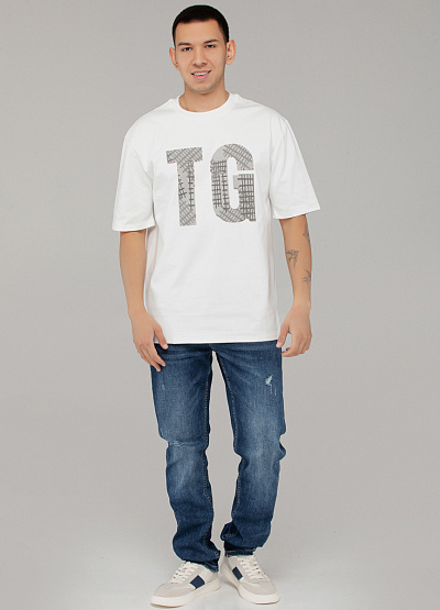 • Мужская белая футболка с принтом TG — контраст, который работает на стиль
