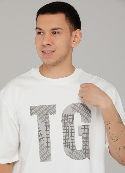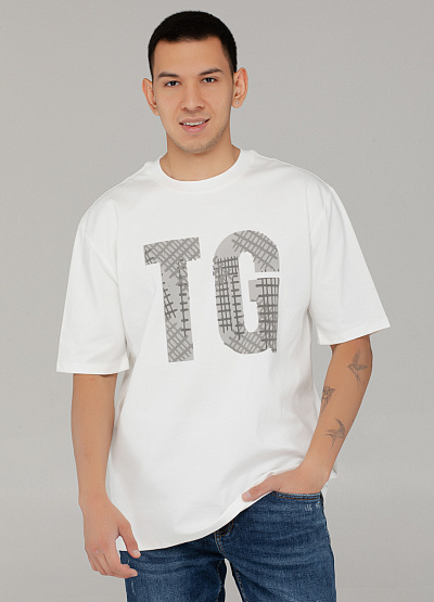Свежий белый цвет, расслабленный силуэт и крупный принт TG с текстурным эффектом — эта футболка говорит за себя. Идеальный вариант для тех, кто ценит простоту с изюминкой.