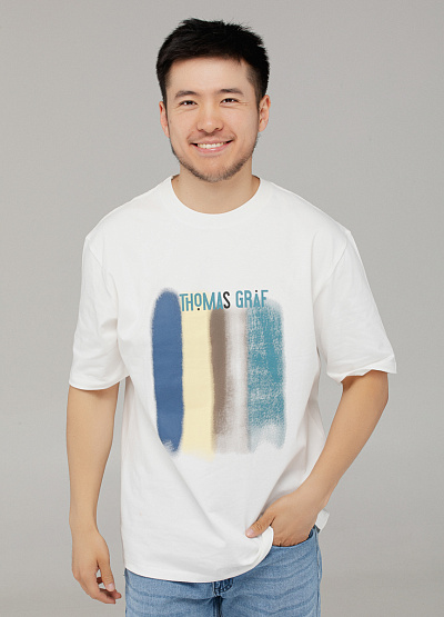 Эта футболка от Thomas Graf — гармония цвета и формы. Принт в виде разноцветных мазков создаёт эффект ручной росписи, делая каждый образ ярче и динамичнее.