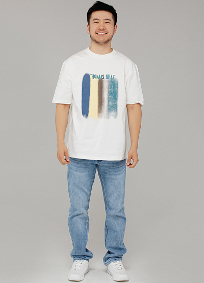 • Мужская светлая футболка с принтом в стиле арт — для выразительного повседневного образа
