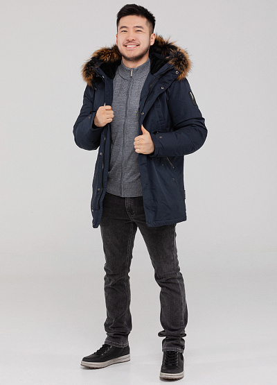 • Мужская куртка темно-синего цвета  от бренда Shark Force. Благодаря своей универсальности и практичности модель на замке с меховой отделкой станет незаменимой вещью в гардеробе каждого мужчины. Она идеально подходит для повседневной носки. Имеет несколько карманов, где можно удобно хранить мелкие предметы или согревать руки в холодную погоду.