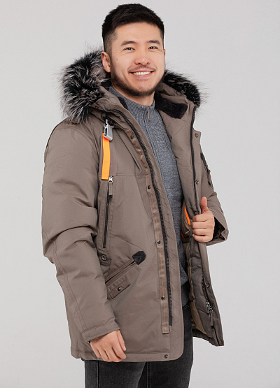 • Мужская куртка песочного цвета  от бренда Shark Force. Благодаря своей универсальности и практичности модель на замке с меховой отделкой станет незаменимой вещью в гардеробе каждого мужчины. Она идеально подходит для повседневной носки. Имеет несколько карманов, где можно удобно хранить мелкие предметы или согревать руки в холодную погоду.