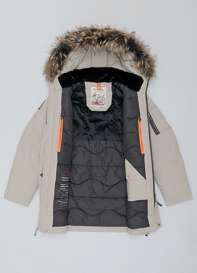 • Мужская куртка от бренда Shark Force. Модель прямого кроя. Капюшон с мехом на шнурке. Застежка на молнии и кнопках. Застежка на молнии по бокам. Множество карманов.