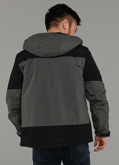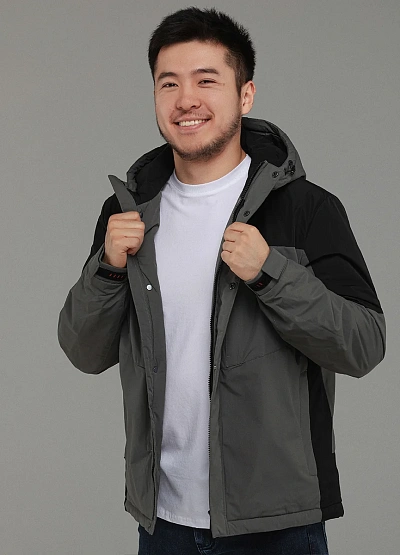• Мужская демисезонная куртка с капюшоном в комбинированной серо-чёрной расцветке — практичное решение для повседневного гардероба. Модель выполнена в спортивно-городском стиле, сочетает лаконичный дизайн и функциональность. Удобный капюшон защищает от ветра и непогоды, а продуманный крой обеспечивает комфортную посадку и свободу движений. Куртка отлично подойдёт для активного ритма жизни и межсезонья.